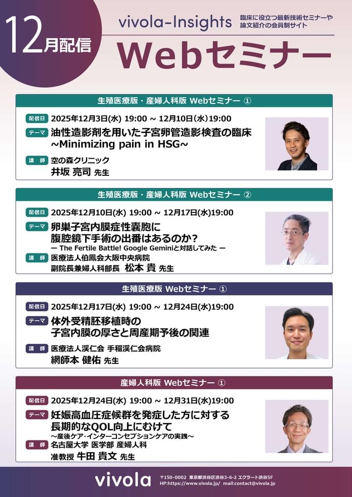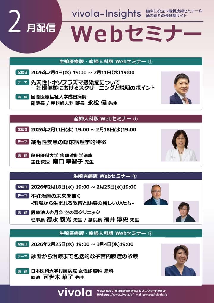 産婦人科領域に特化したwebセミナーや論文紹介、日常の臨床を支援する充実したコンテンツを提供